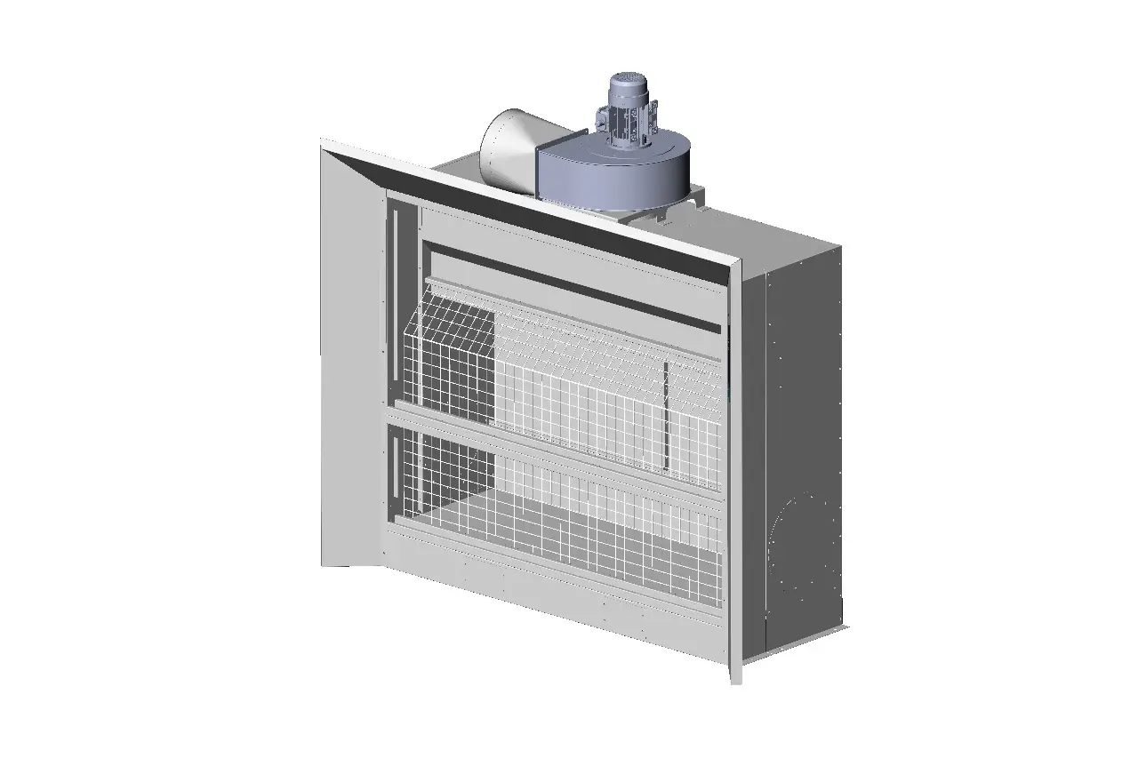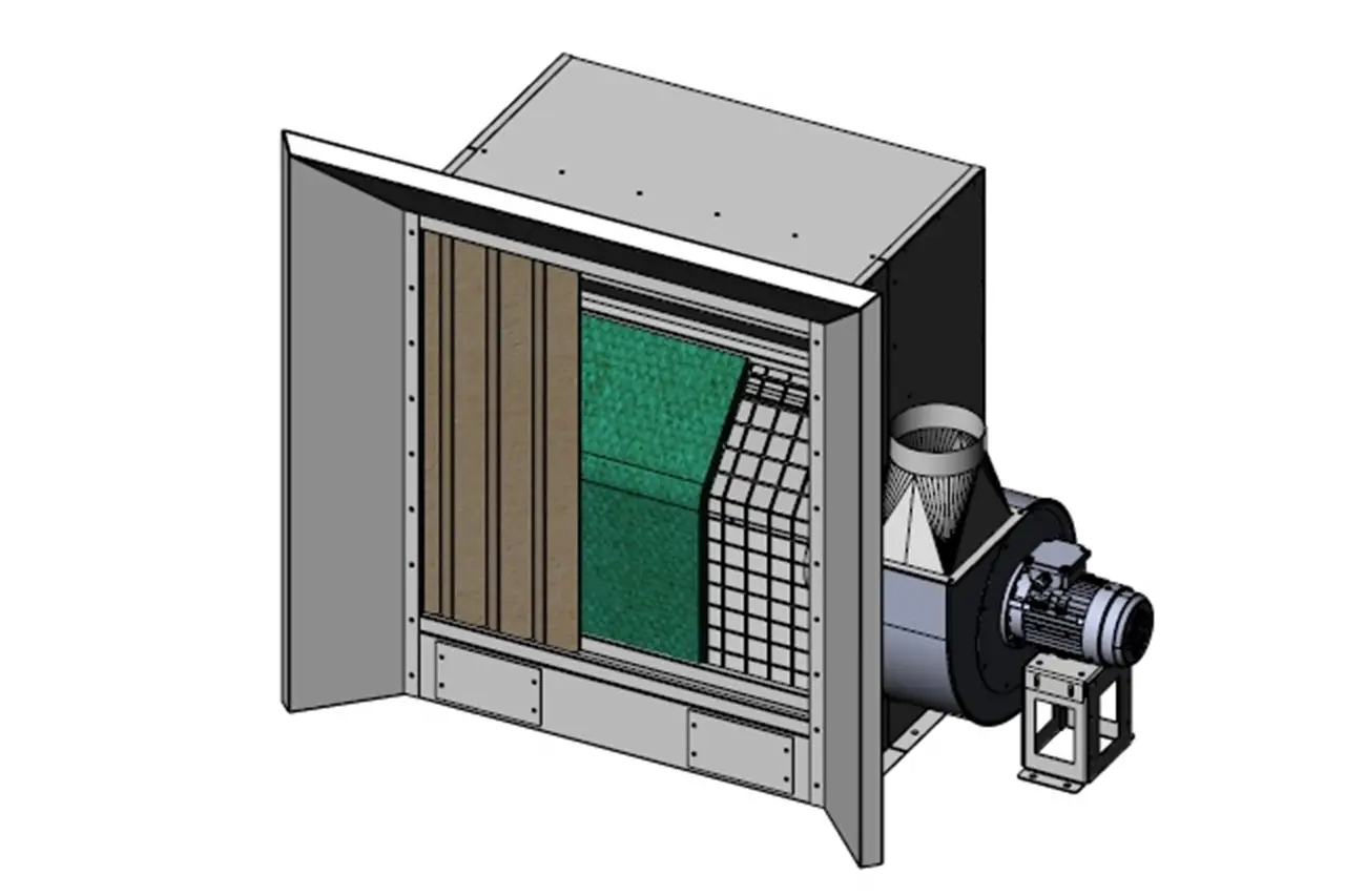 Ein leistungsstarker Motor, ein effizienter Ventilator und ein passgenaues Abluftrohr bilden das technische Rückgrat der SPX. Diese Komponenten erzeugen die notwendige Luftleistung, um Farbpartikel zuverlässig abzuführen. Das robuste Stahlblechgehäuse und die präzise abgestimmten Maße sorgen für Stabilität, Langlebigkeit und hohe Betriebssicherheit.
